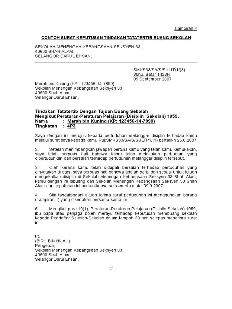 8 Contoh Surat Buang Sekolah Lampiran F Pdf